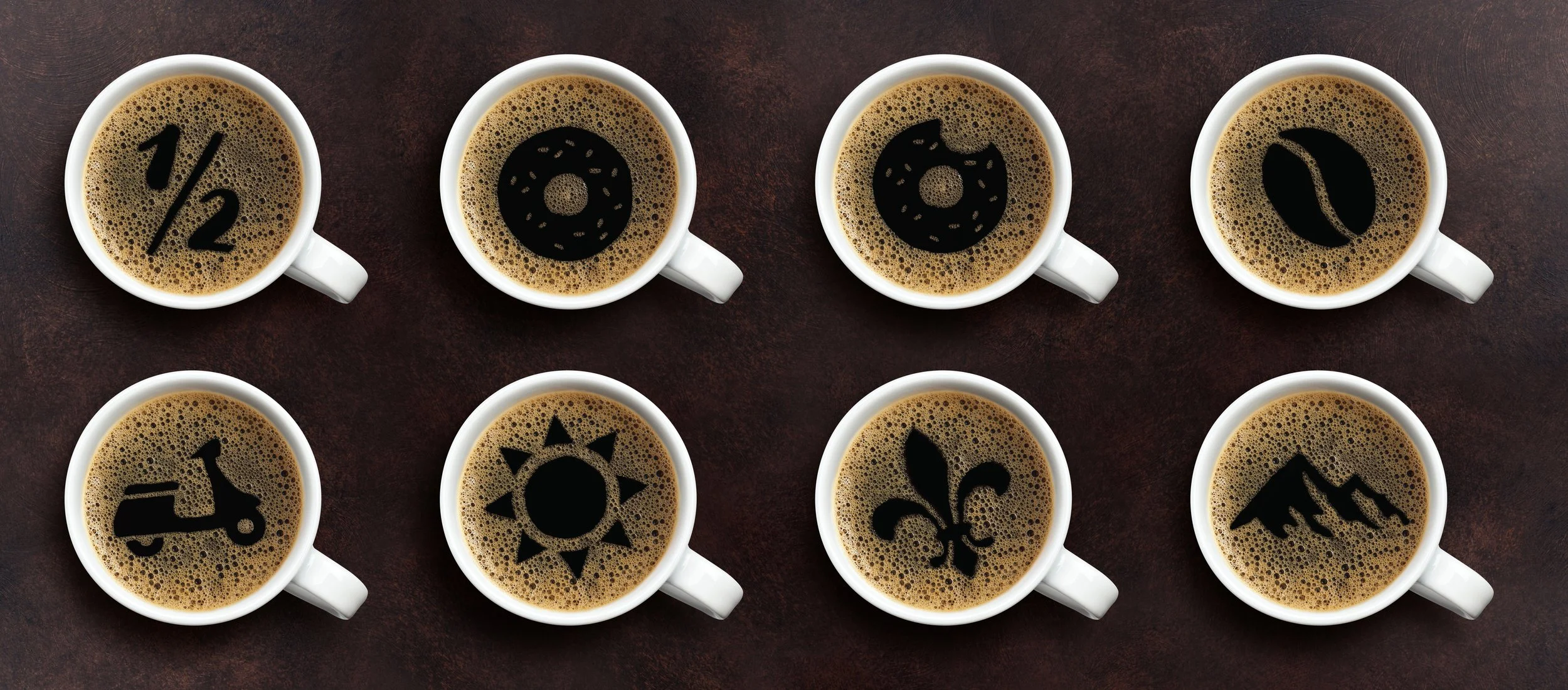 Brand Development: Category Research + Logo Design + Package Design Photography + Retouching: All food photography arranged using stock images + coffee foam individually arranged to form image